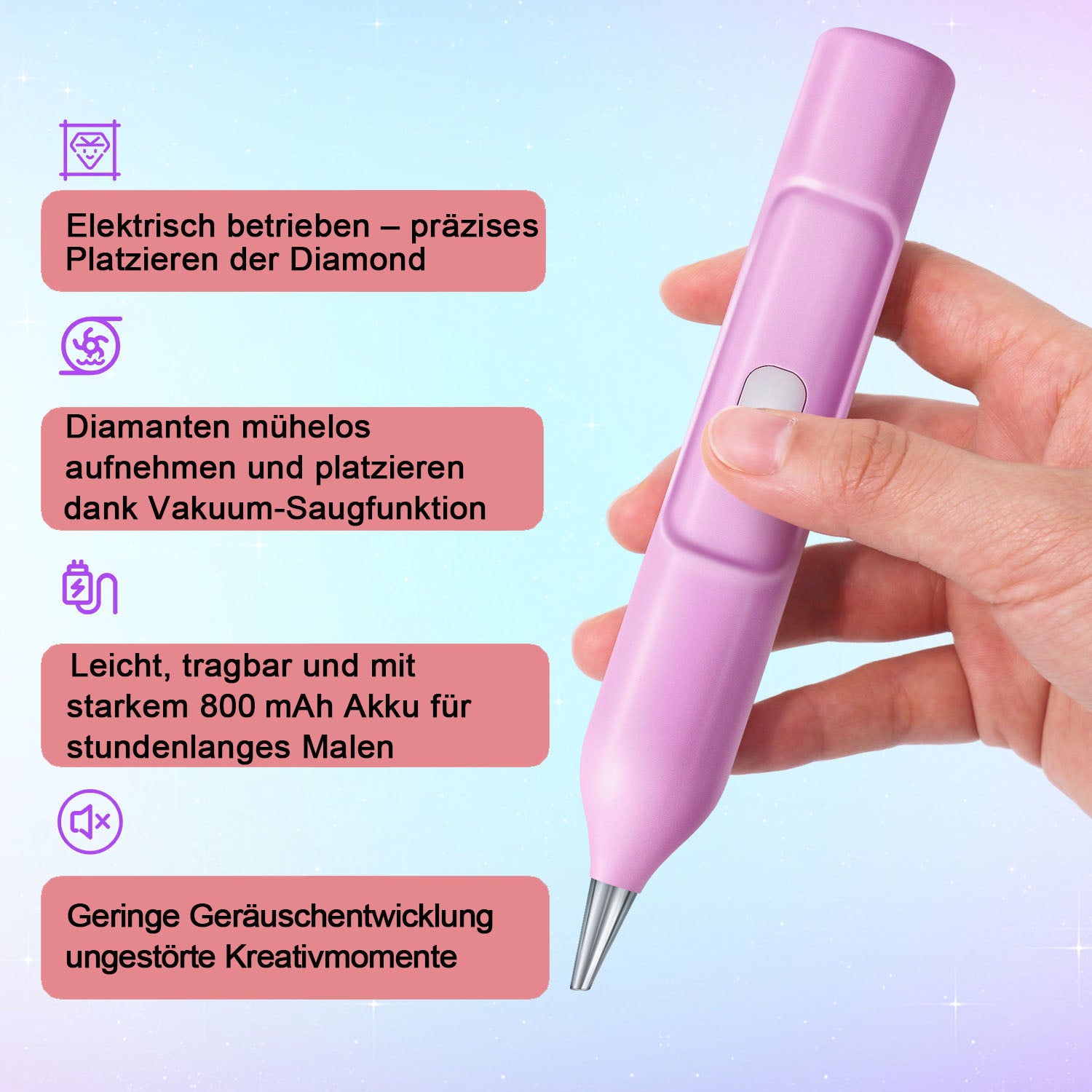 Erleben Sie eine neue Art des Diamond Paintings: Der elektrische Diamond-Painting-Pen kombiniert moderne Technik mit maximalem Komfort – ideal für Anfänger und erfahrene Kreative.
